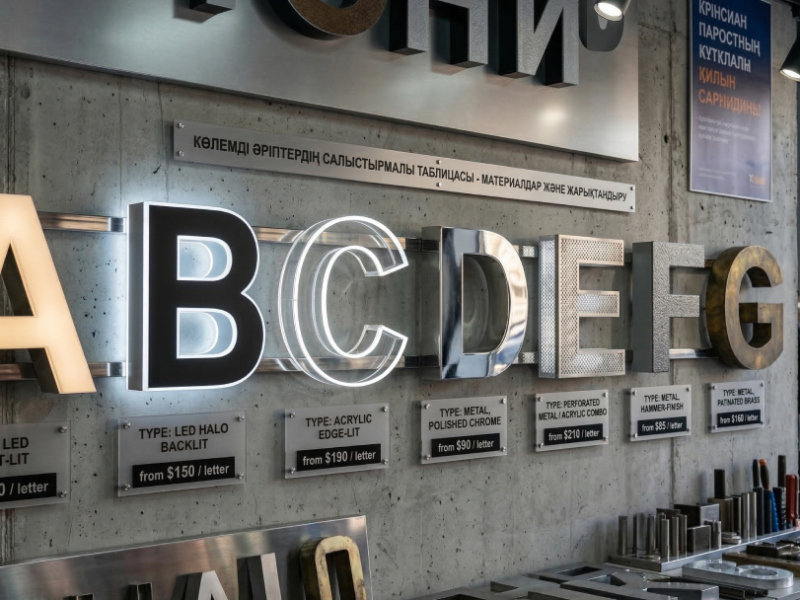 Цены на объемные буквы в Астане зависят от используемых материалов, типа подсветки, размера, способа крепления. Самый дешевый вариант – несветовые конструкции из пластика.